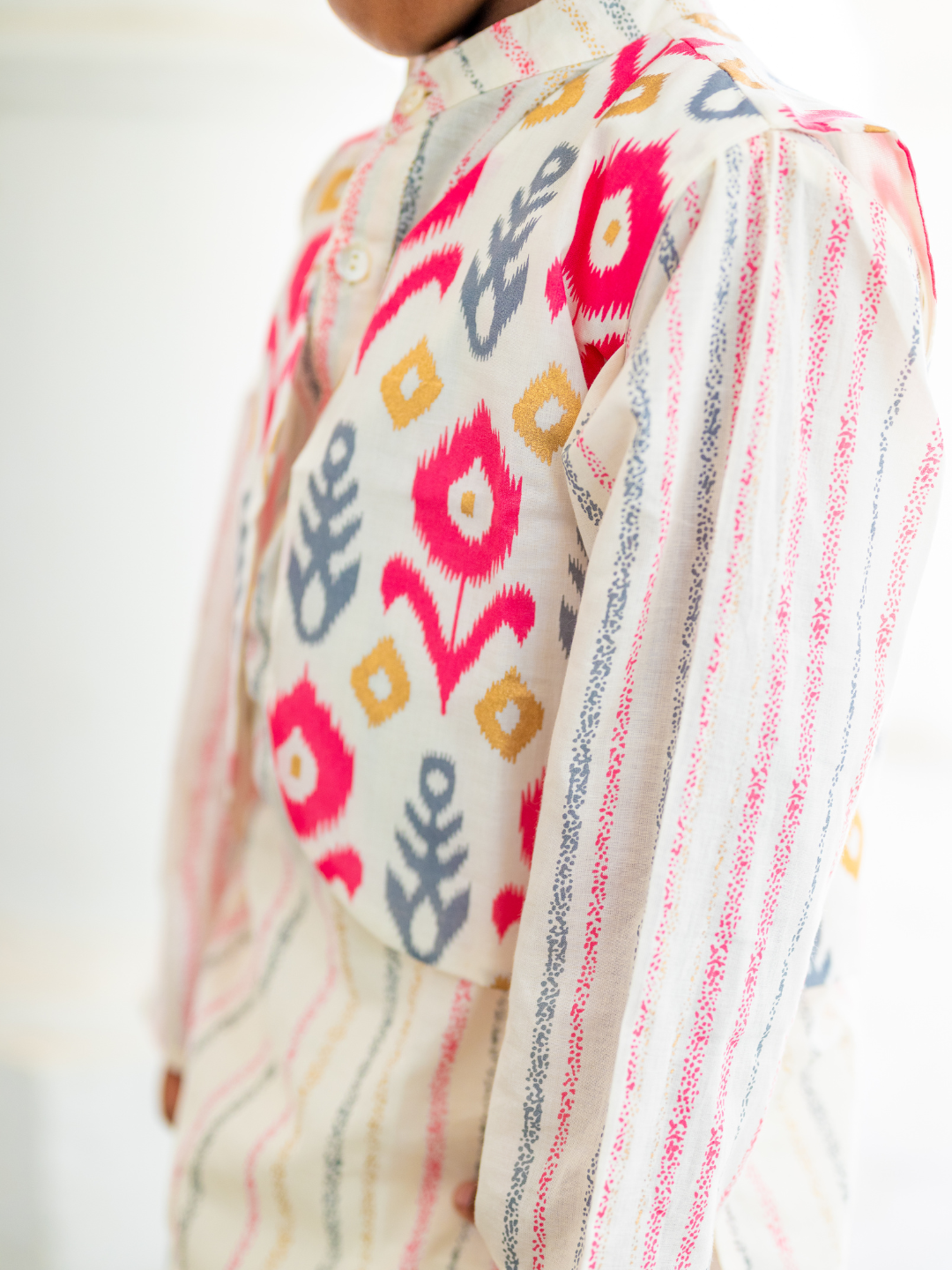 Gul Pink Boys Kurta Dhoti Jacket in Cotton
