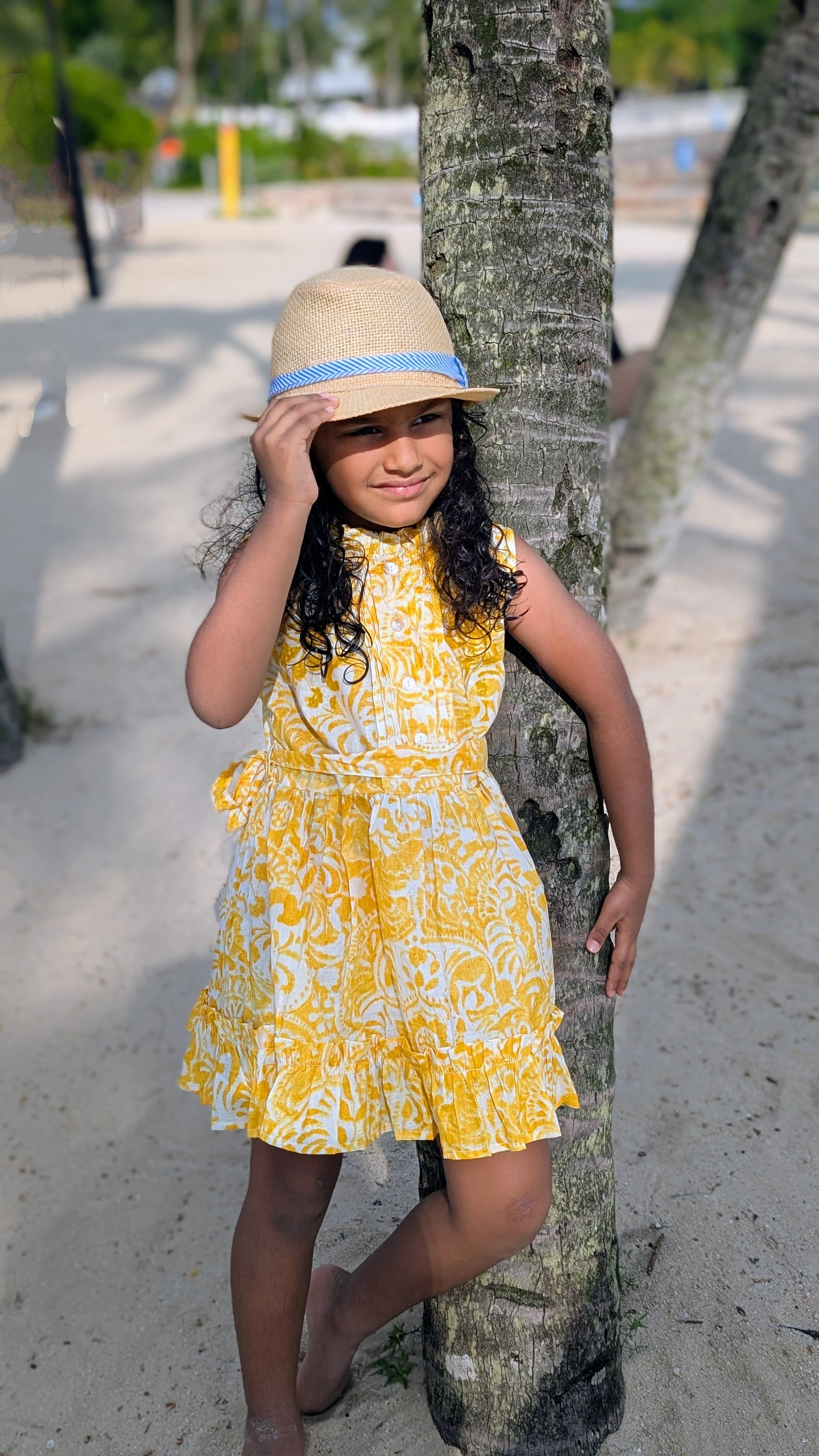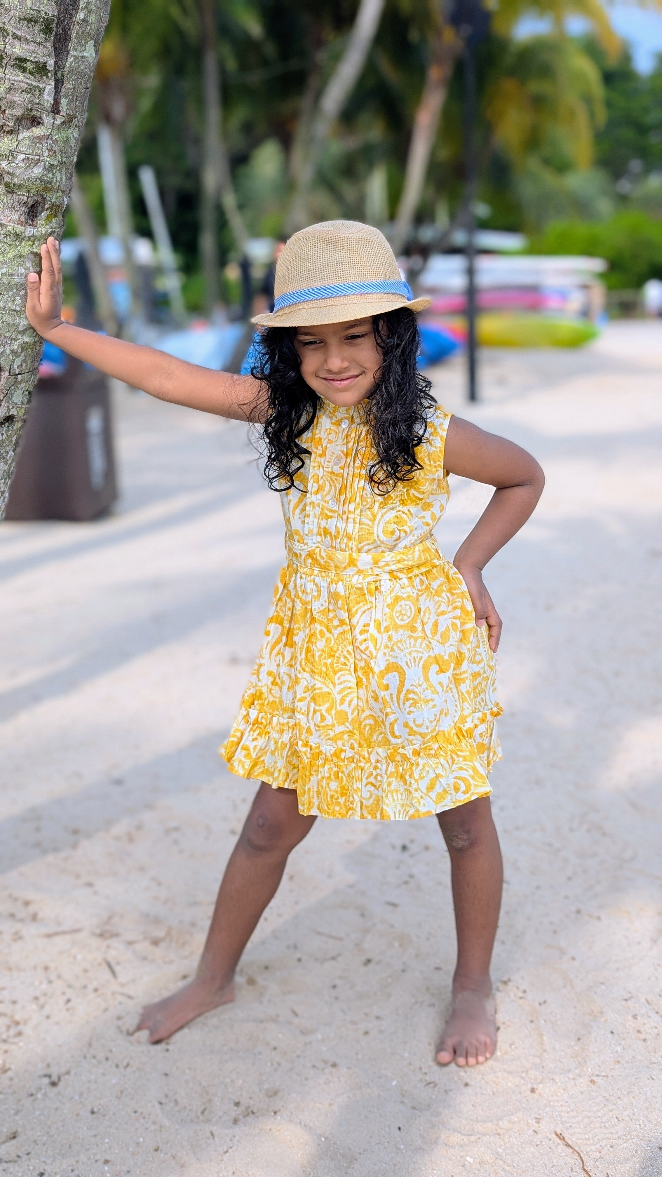 Watch your little ray of sunshine sparkle in the Kyra Breezy Pintuck Dress—a buttery Nimbu yellow dream woven for giggles, grass-stained knees, and childhood wonder. Just like mama's cherished style, but sized for tea parties, backyard explorations, and endless twirls!