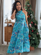Eden Lagoon Women's Long Halter Dress in Turquoise in Muslin Cotton