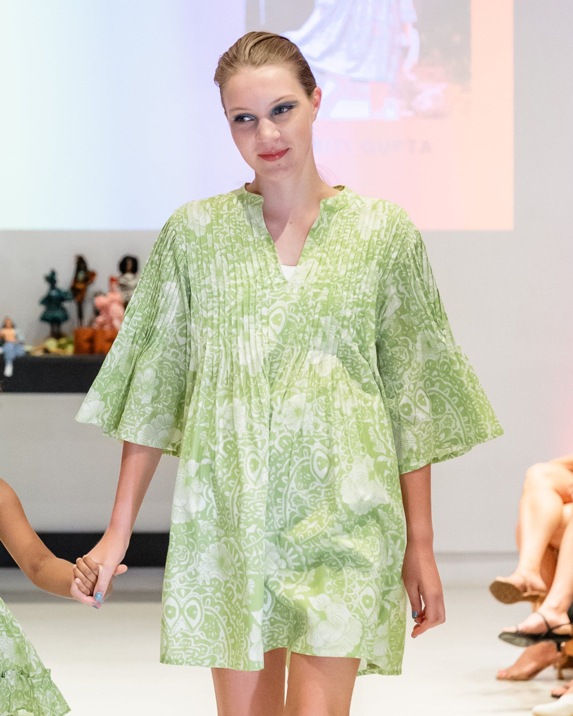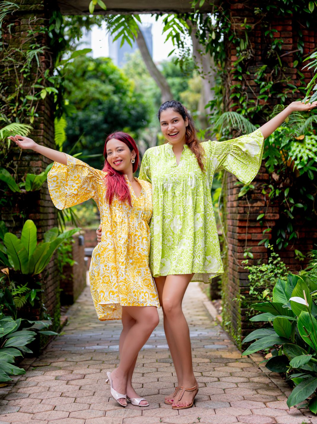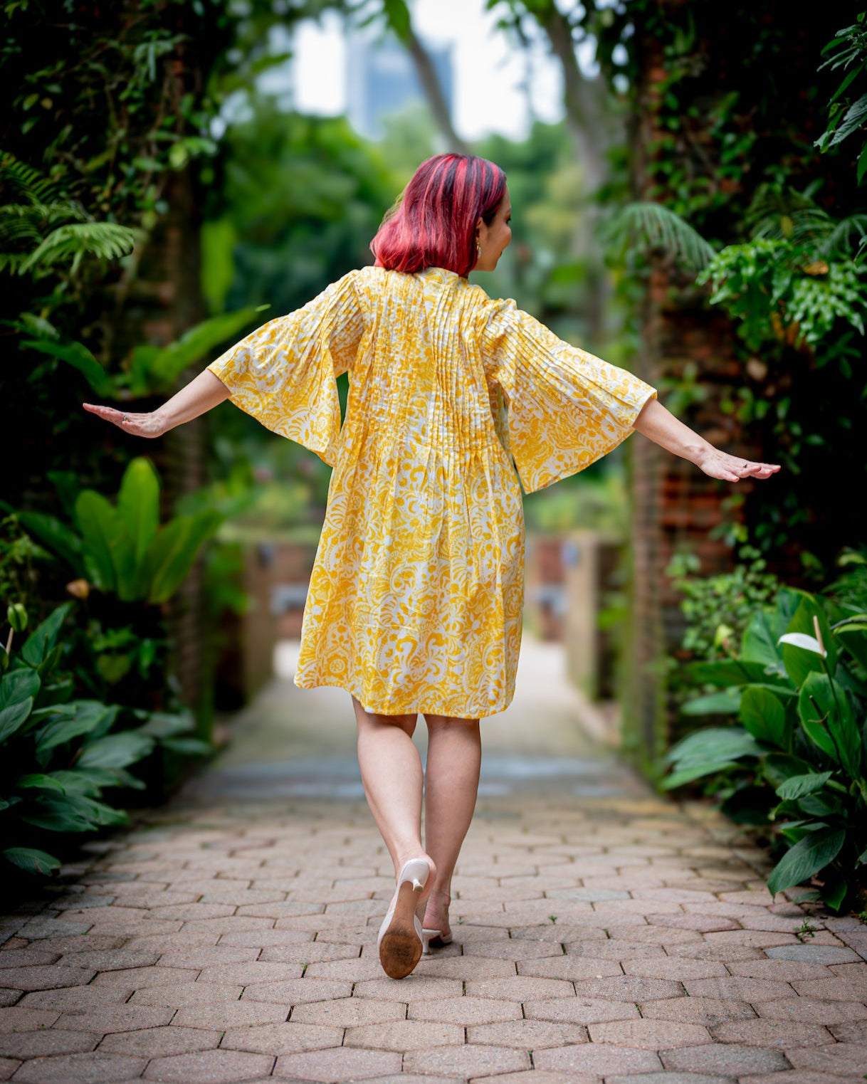 Kyra Breezy Womens Pintuck Dress in Nimbu Yellow