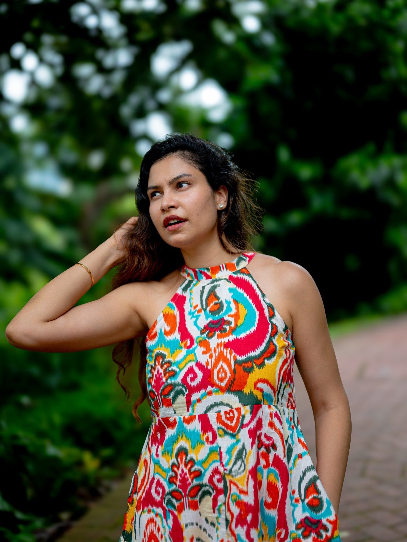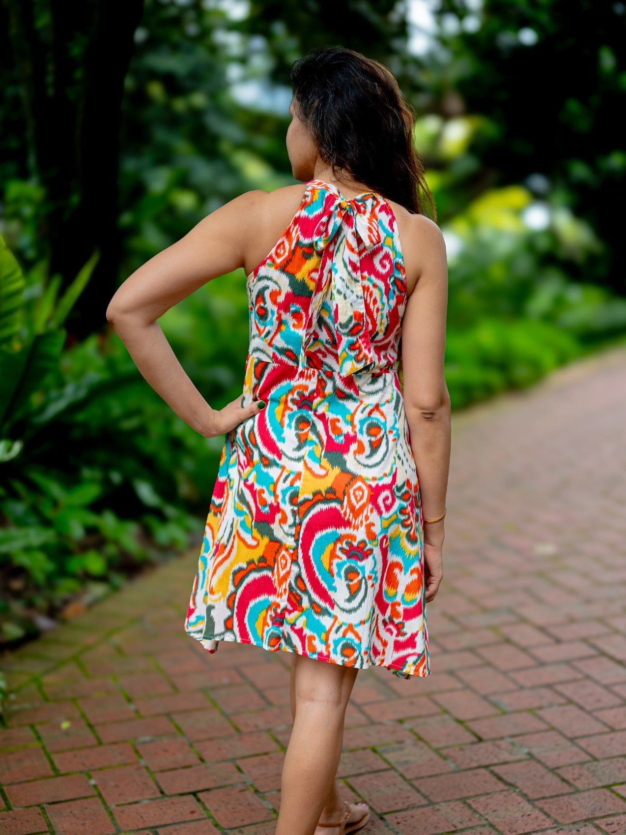 Hawaii Women's Short Halter Dress with Pockets in Multicolor