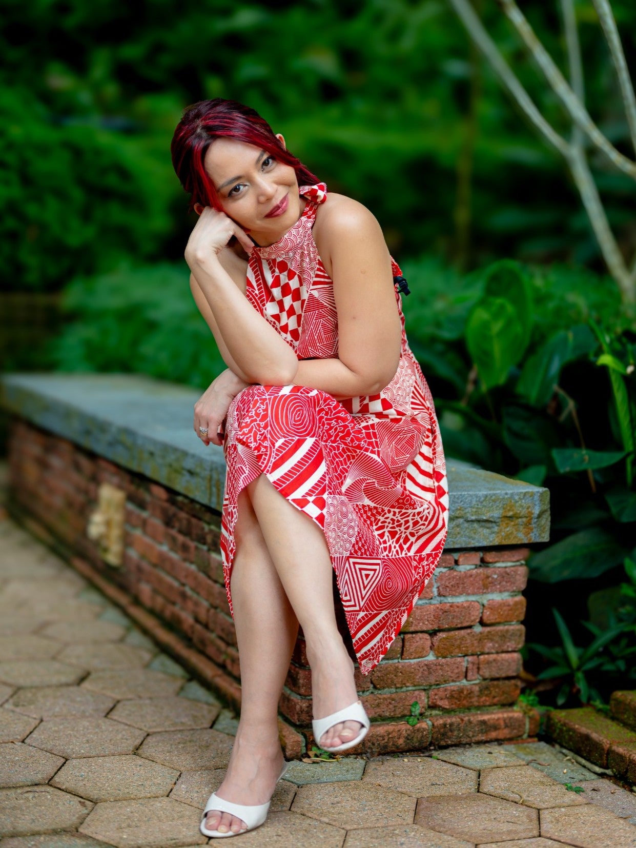 Imperial Women's Cheongsam Dress with Pockets in Red and White