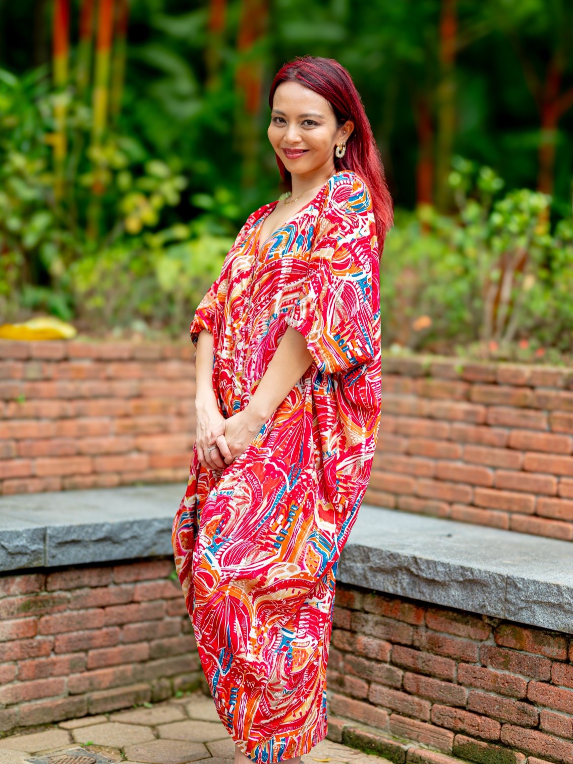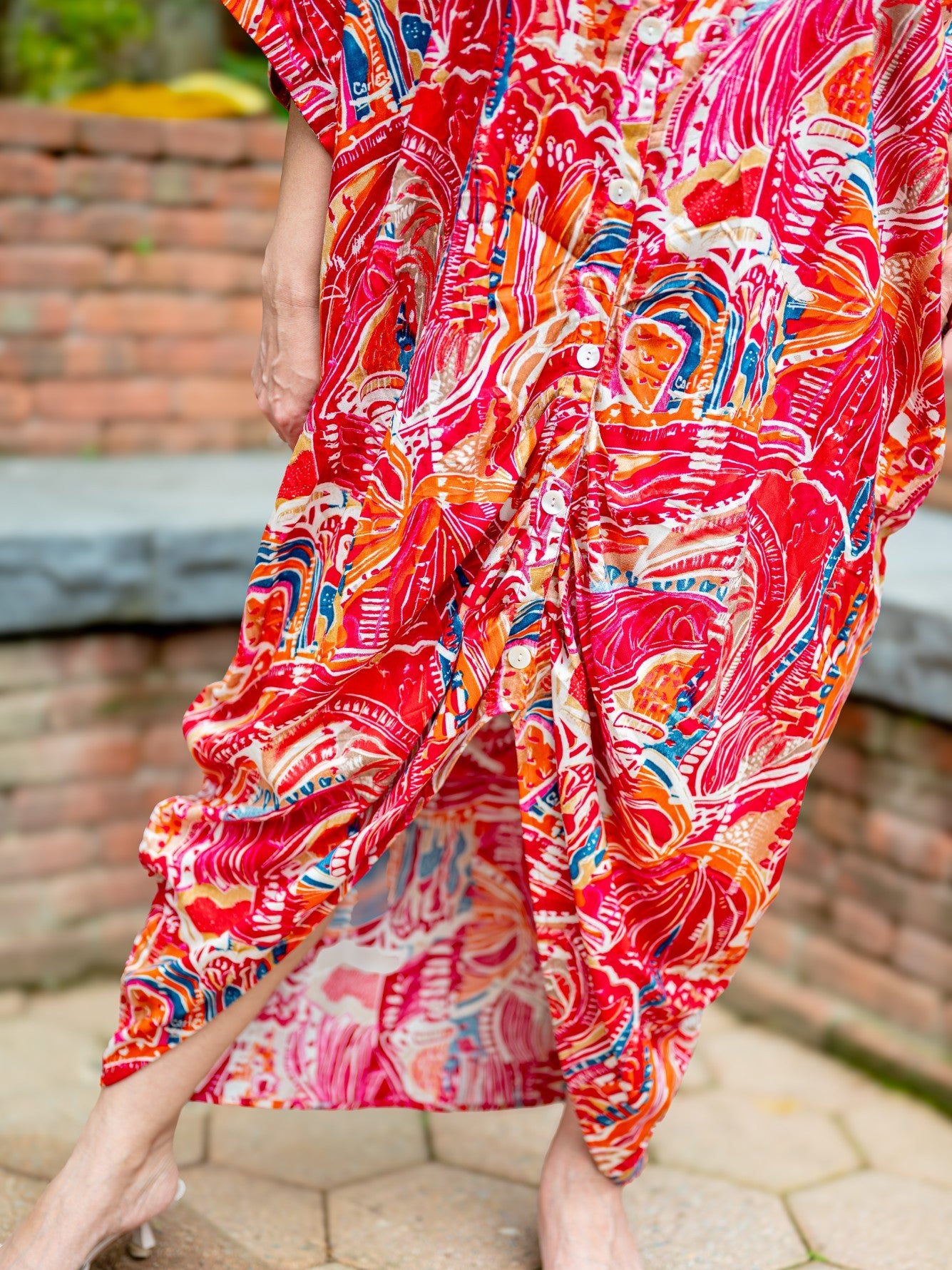 Celestial Women's Cheongsam Dress with Pockets in Red