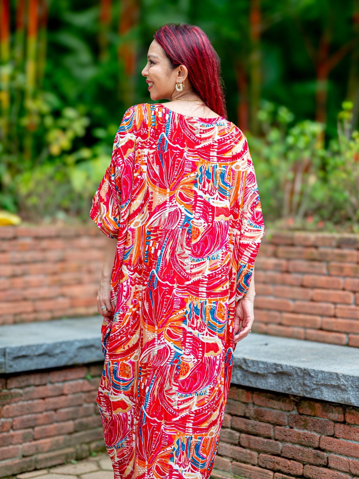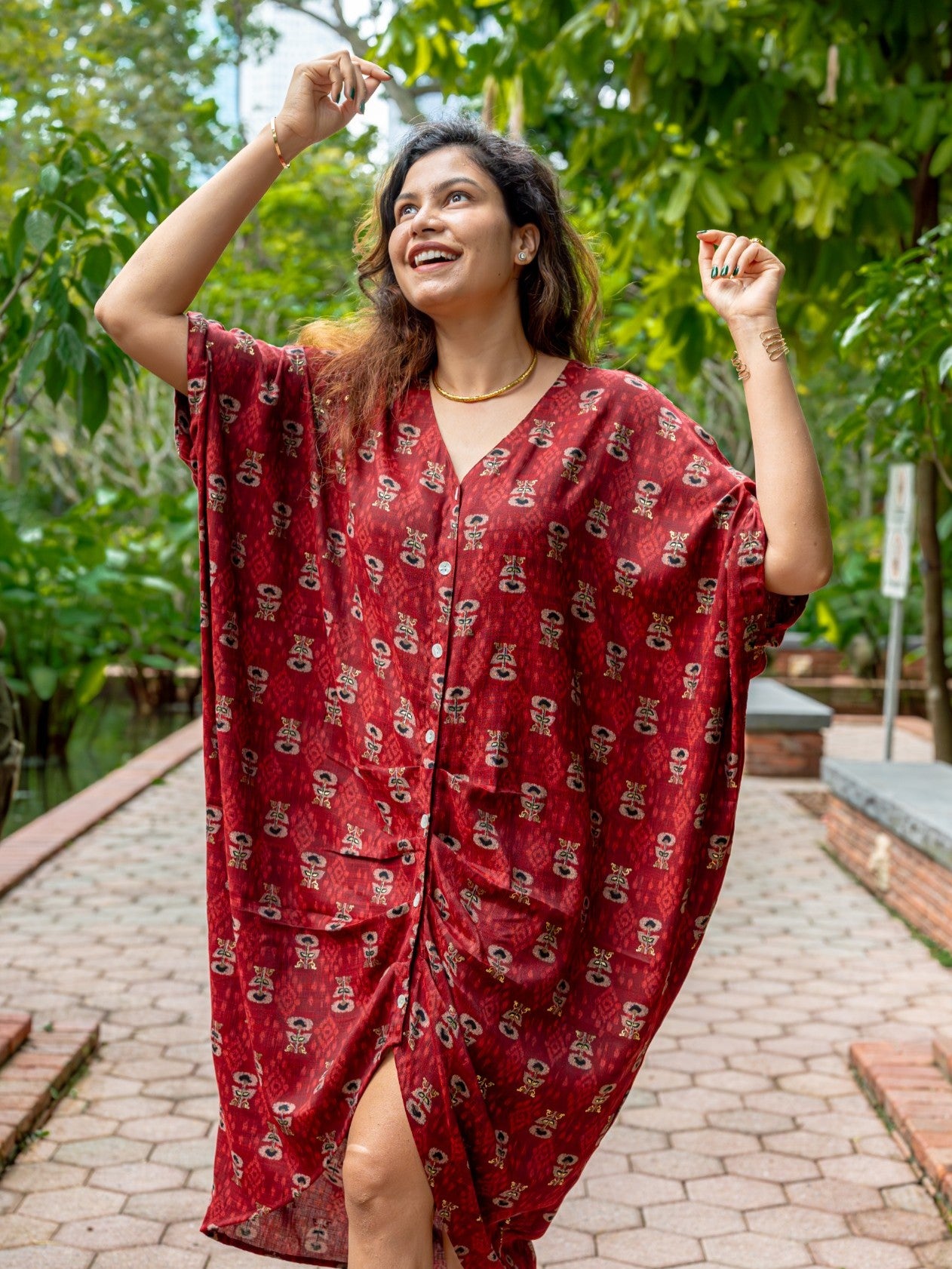 Mira Women's Maroon Flowy Shirt Dress in Cotton