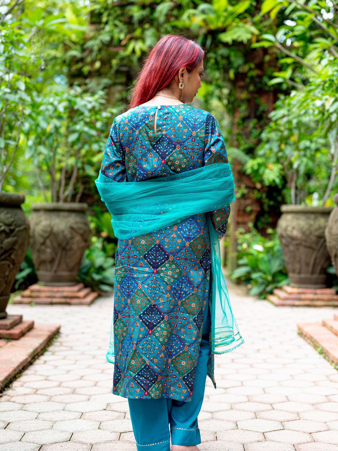 Shan Green Women's 3pc Kurta set with Dupatta in Muslin Cotton