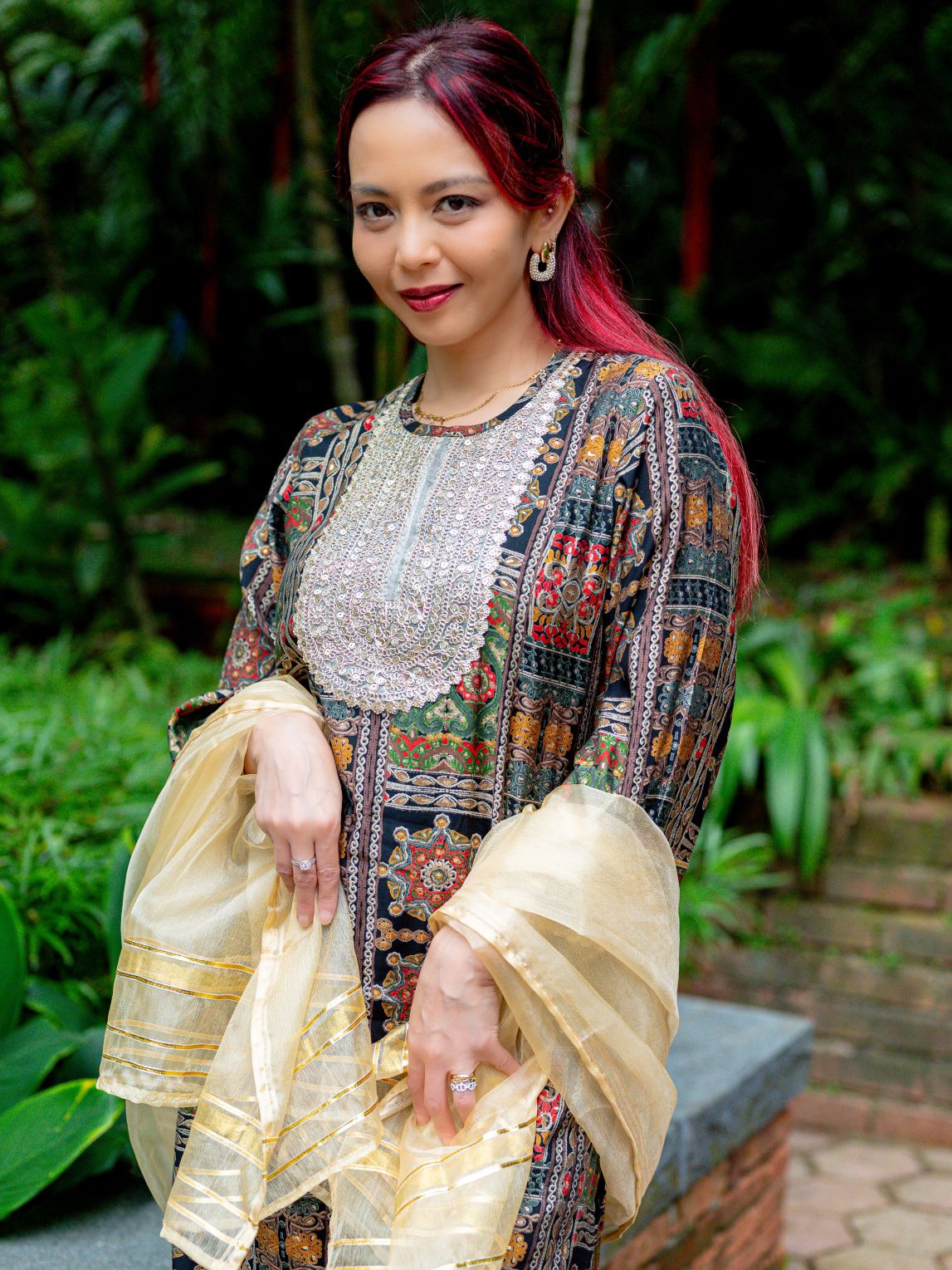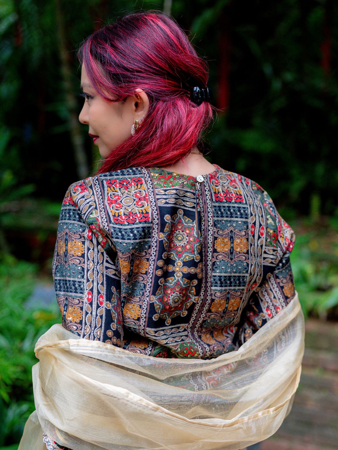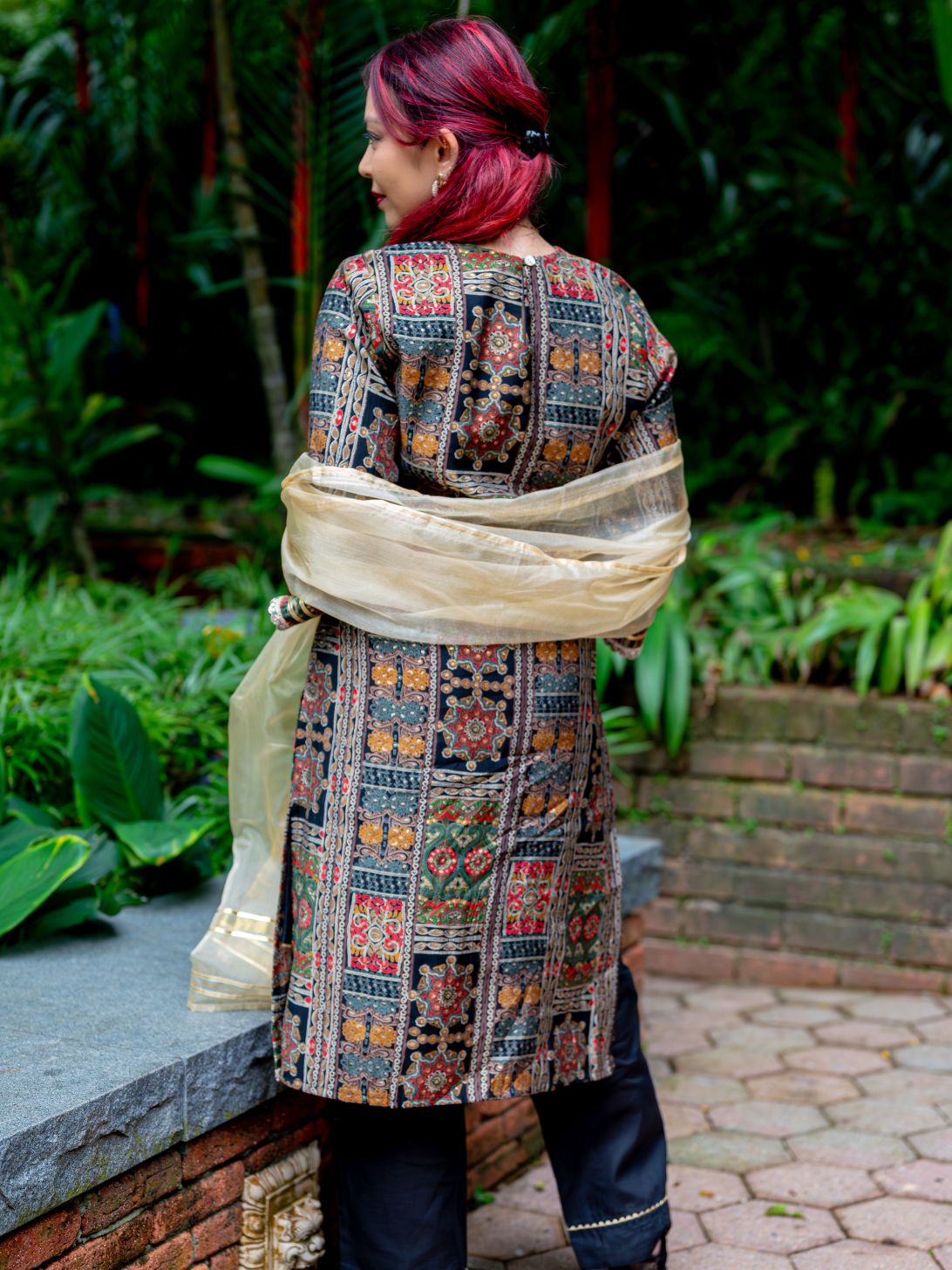 Shan Black women's 3pc Kurta set with Dupatta in Muslin Cotton