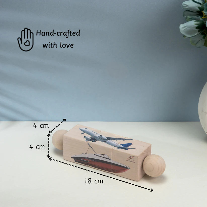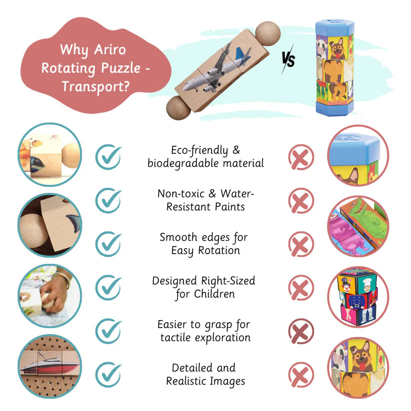 that is ideal for your toddler who is sitting up by them-self and is exploring their grips. Printed with realistic images, this puzzle is ideal for a toddler who loves keep things simple and real. The rotating cubes helps
