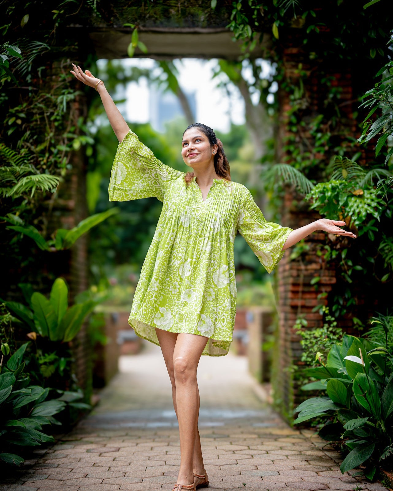 Slip into relaxed elegance with the Kyra Breezy Pintuck Dress in Lime Green—a chic and airy piece crafted for the contemporary woman who adores effortless grace. Whether for weekend brunches, casual gatherings, or leisurely walks under the sun, this dress brings a touch of freshness to every moment.
