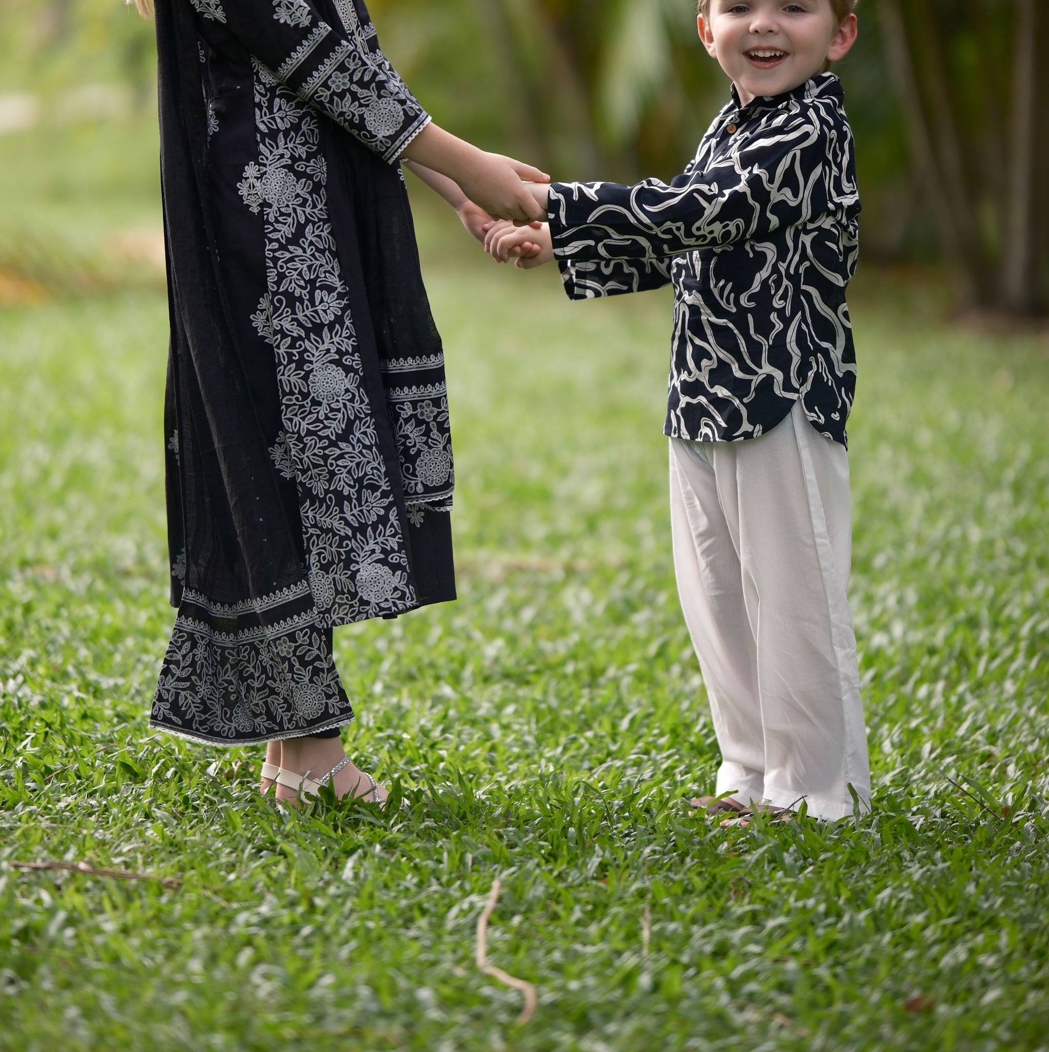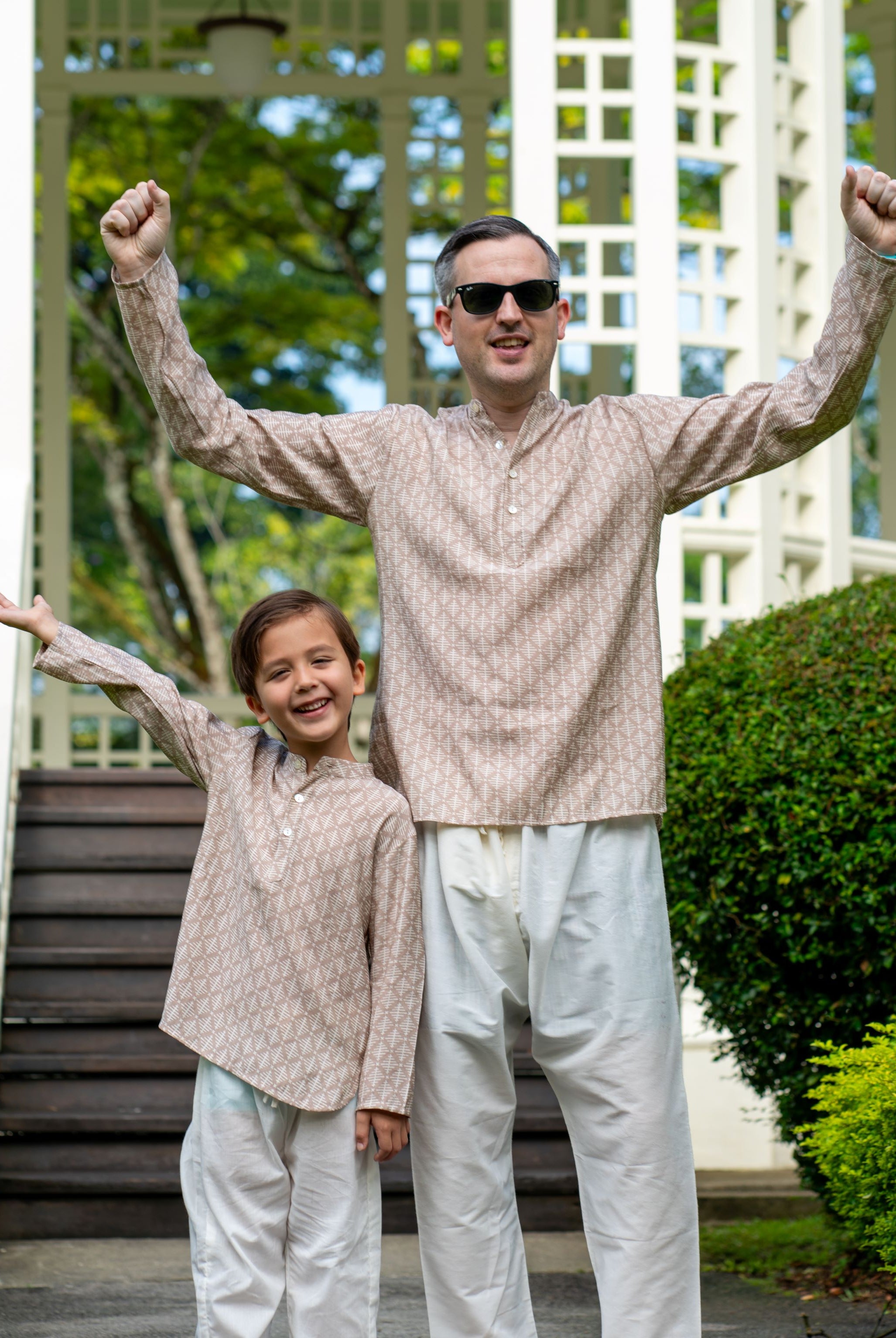 Our latest Hari Raya ethnic wear collection of Baju Kurung & Baju Melayu family sets seamlessly blends modernity with ethnic elegance. Crafted with meticulous attention to detail, each piece in this collection is a testament to artistry and tradition. Made from natural fabrics ranging from the softest muslin to premium cotton, these pieces promise ultimate comfort.