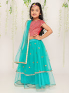 It was love at first sight. The light flowy frills of the double layered net skirt and the beautiful, intricate sequined blouse with the girly butterfly sleeves are sure to make you gush over your little princess. We are confident you'll love this piece and would probably take a million photos of your little angel in this gorgeous outfit.