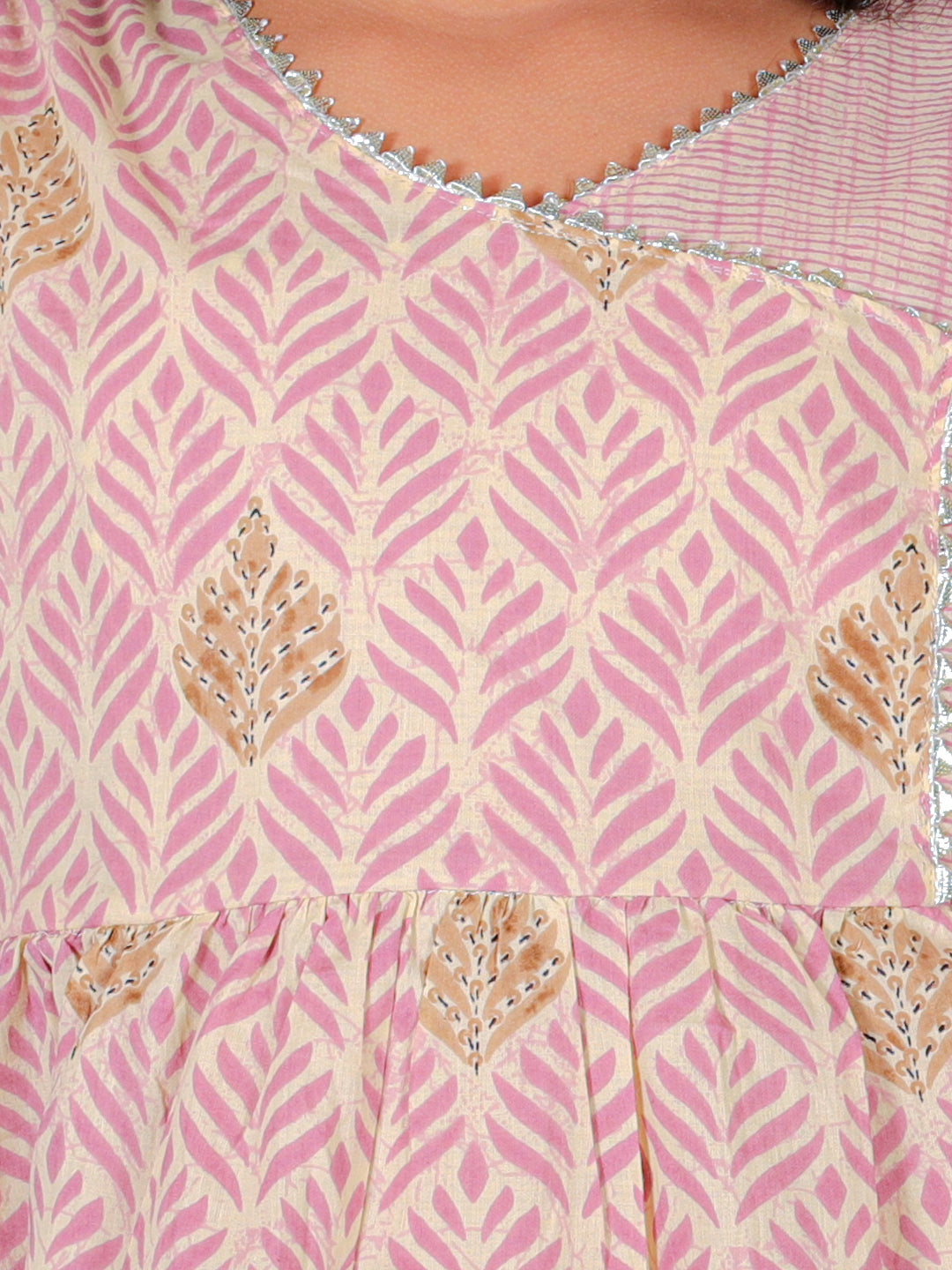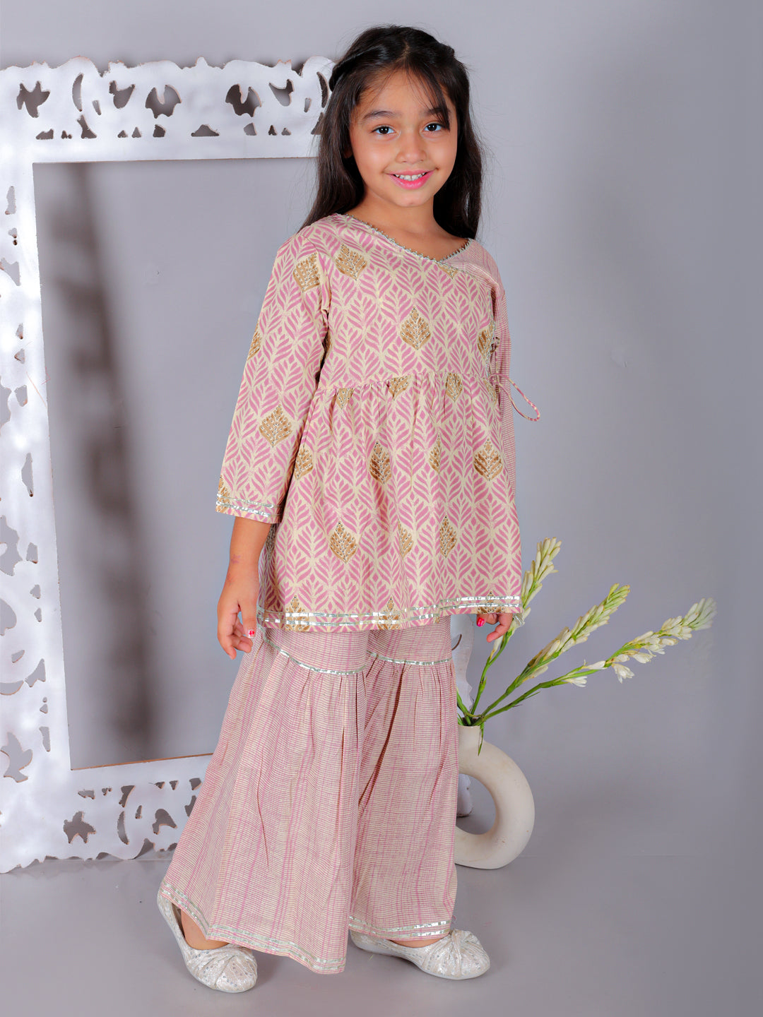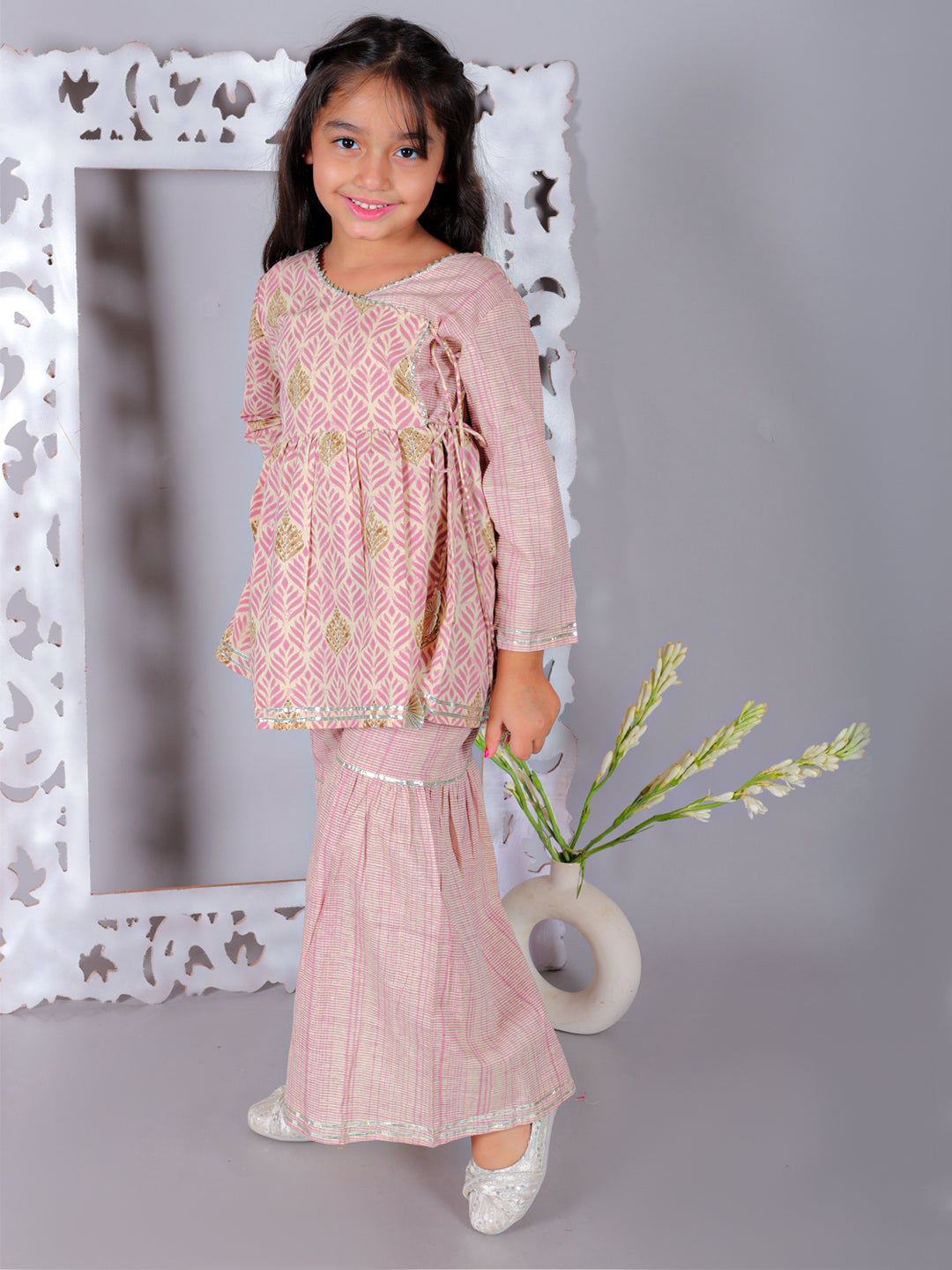 Simran Girls Cotton Angrakha Kurta and Sharara - Pink