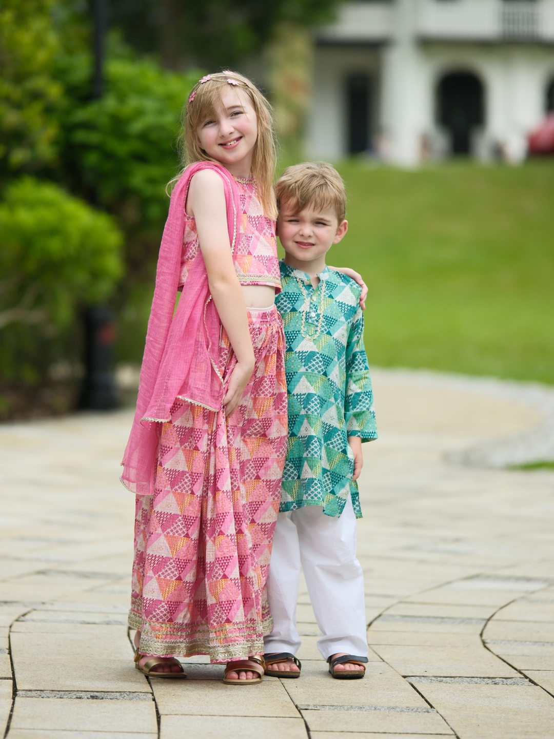 Create a sweet brother–sister twinning moment with Mehak Pink Boys Kurta Pajama or Mehak Blue Boys Kurta Pajama
