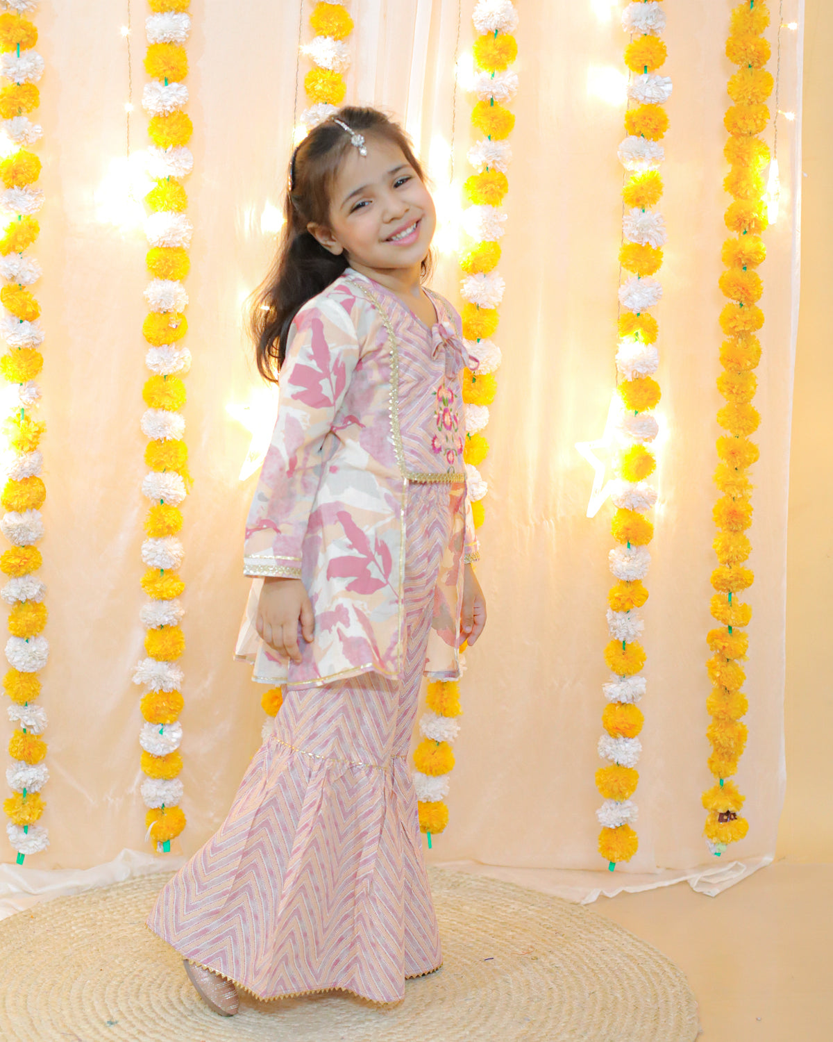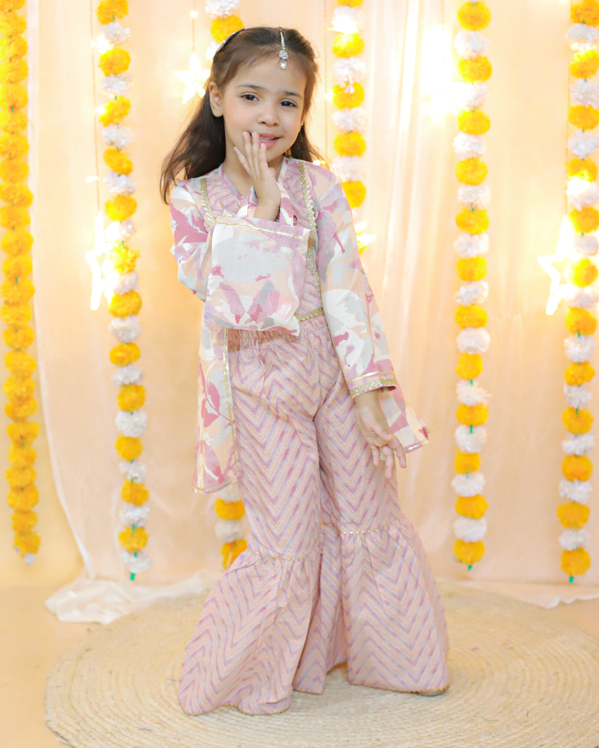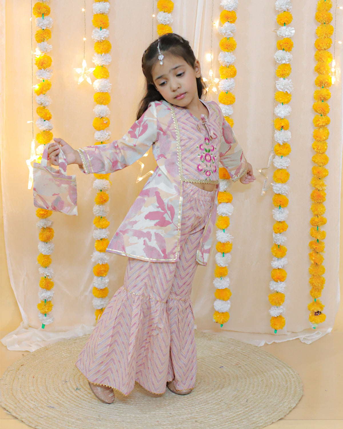 Splash Kurti Sharara Set With Potli Bag in Pink